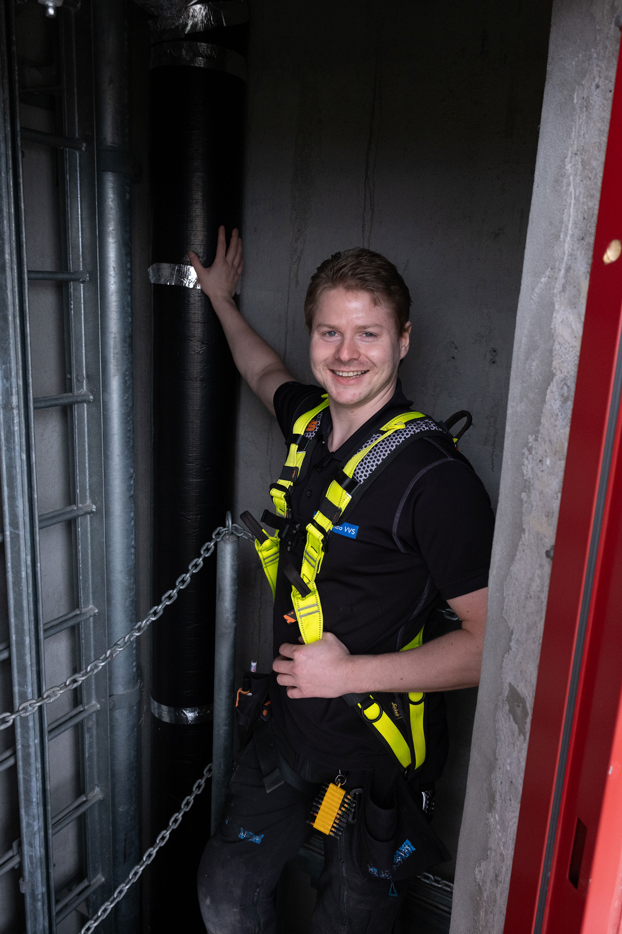 Rørlegger Andreas fra Granbo VVS jobbet med rørutskiftningen i Tyholttårnet.
