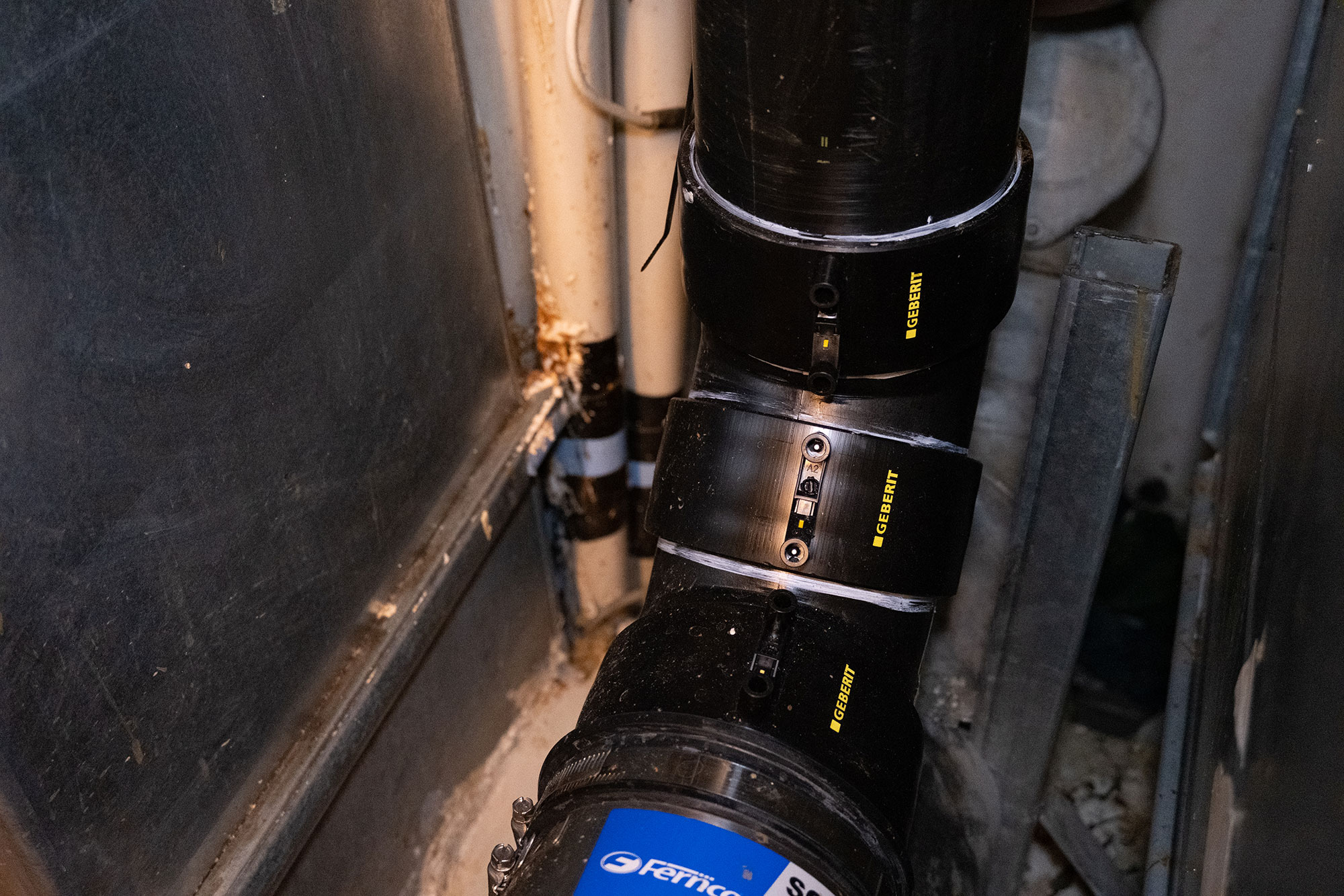 Ved å kombinere prefabrikasjon, god planlegging og et robust rørsystem gjennomførte vi utskiftingen effektivt og sikkert. Geberit PE gir en varig løsning som tåler påkjenningene ved høy fallhøyde og krevende installasjonsmiljø.